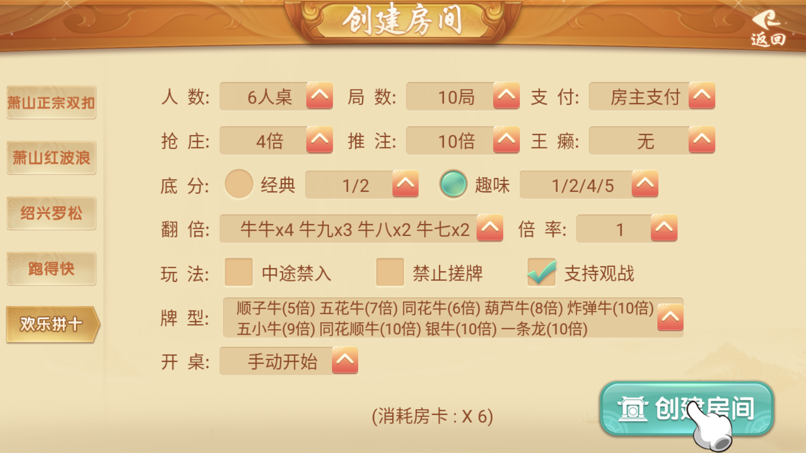 内含游戏:萧山正宗双扣,萧山红波浪,绍兴罗松,跑得快,欢乐拼十