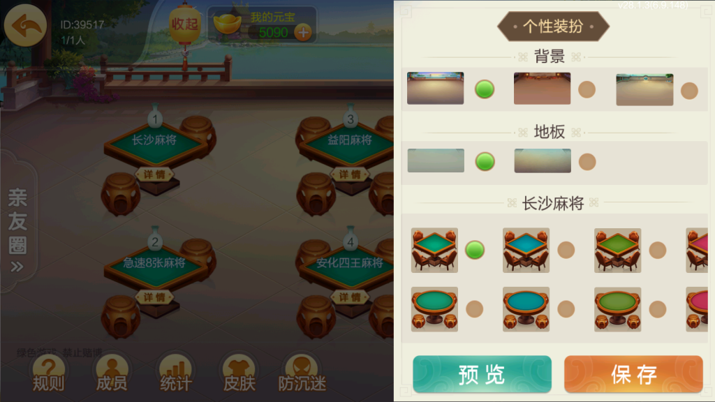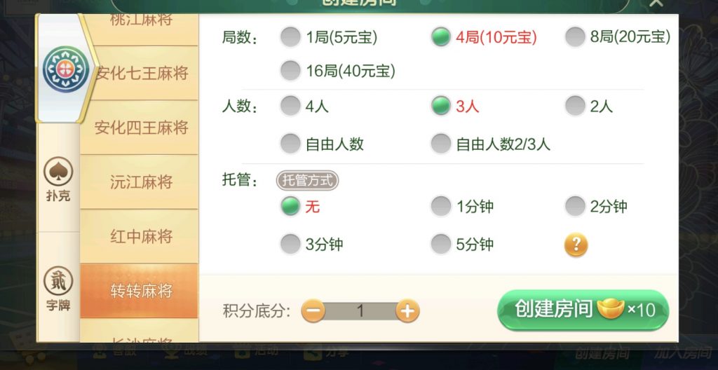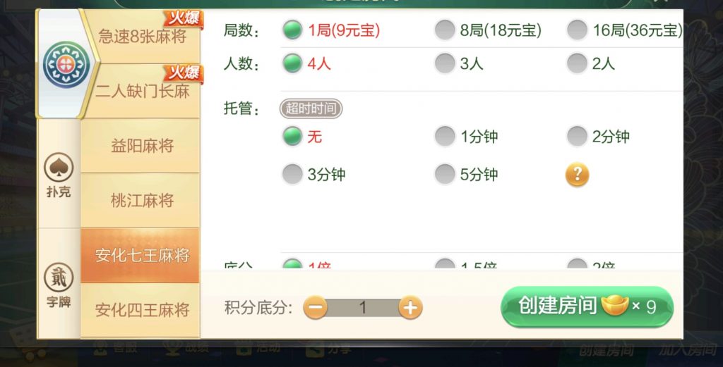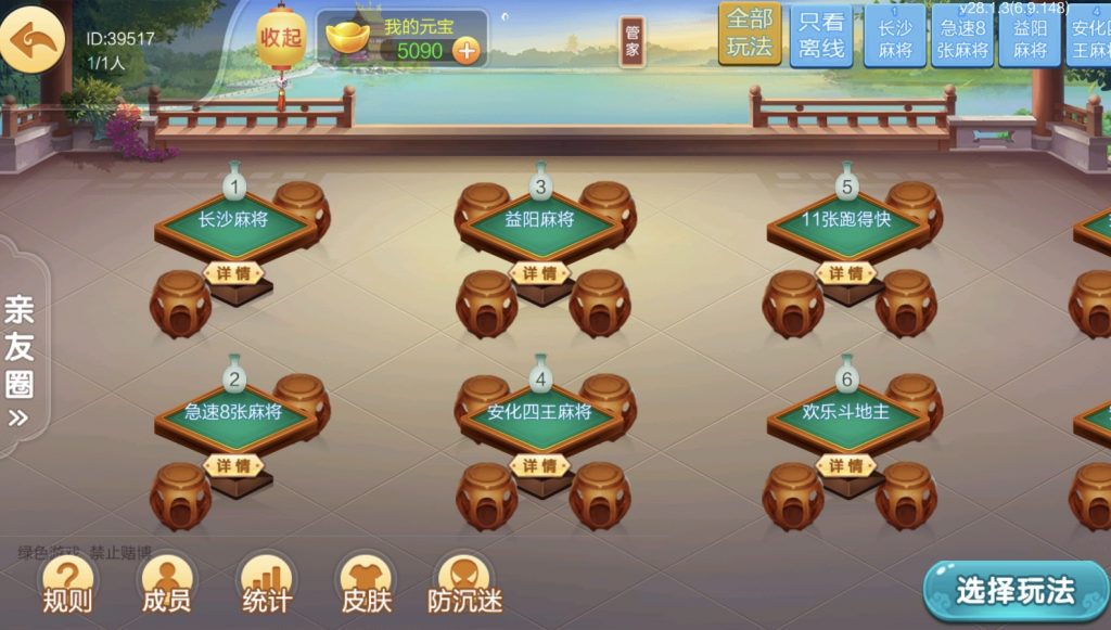 麻将:急速8张麻将,二人缺门长麻,益阳麻将,桃江麻将,安化四王麻将,安化七王麻将,红中麻将,沅江麻将,长沙麻将,转转麻将,炒股麻将
