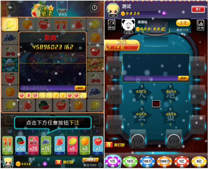 营级H5产品,电玩城房卡版游戏合集,具有超强后台控制输赢,内含有8款:金鲨银鲨、斗地主、欢乐小丑、百人金花、百人牛牛、欢乐12点、水果机、PK游戏,源码附带有部署教程文档