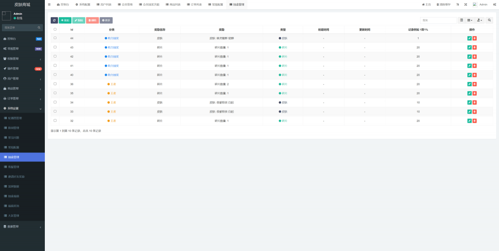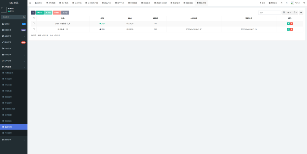 此源码为全新二开的,前端主打游戏皮肤抽奖模式。