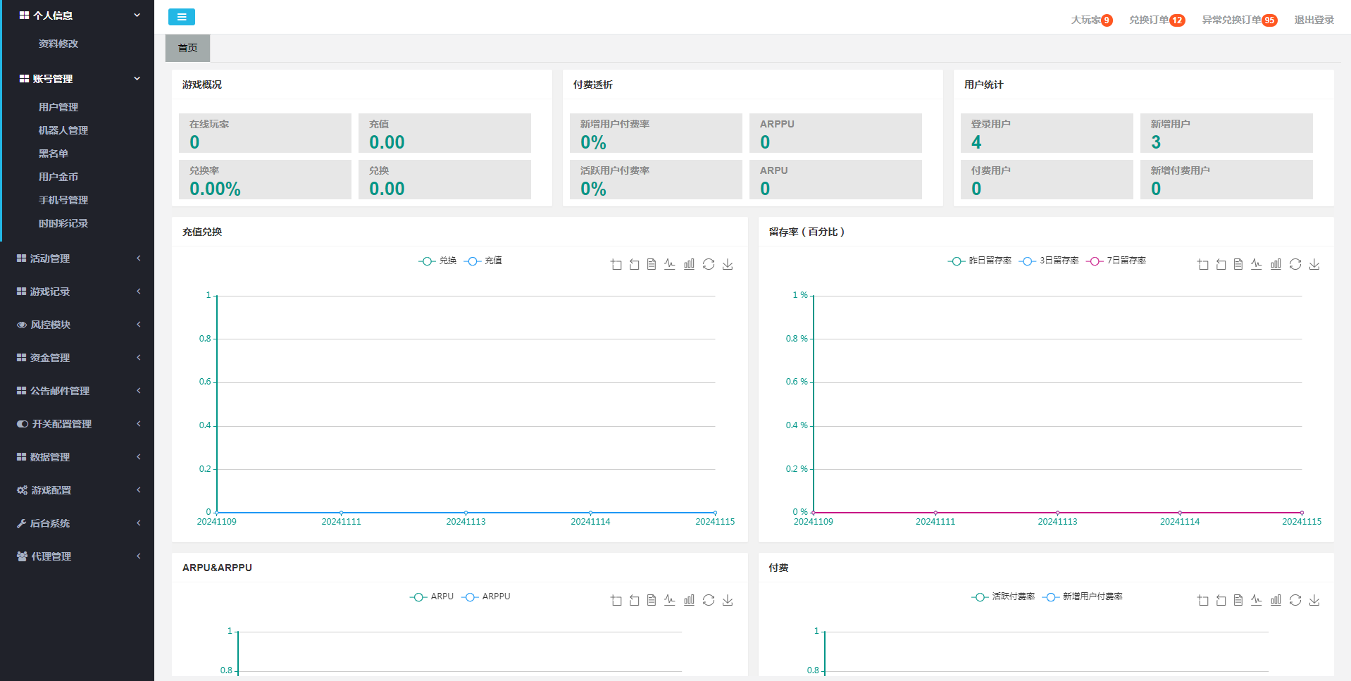 游戏超多功能强大:后台带库存控制和精准控制,前端功能按钮可以随意设置是否显示,进入房间可以设置最低多少分进入 房间底分可以自由设置